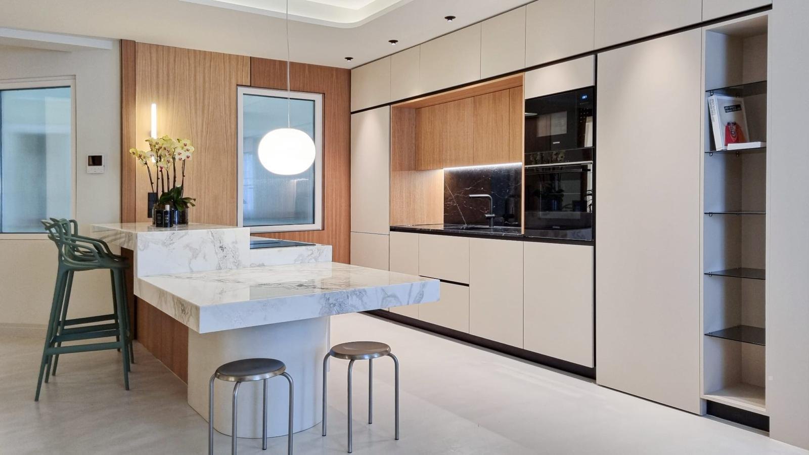 El espacio principal destaca por su luminosidad natural, gracias a los grandes ventanales que bañan el interior de luz durante todo el día. La cocina de diseño, completamente equipada con electrodomésticos premium, se integra con el salón creando un ambiente diáfano, cálido y sofisticado, ideal tanto para el descanso como para el entretenimiento.