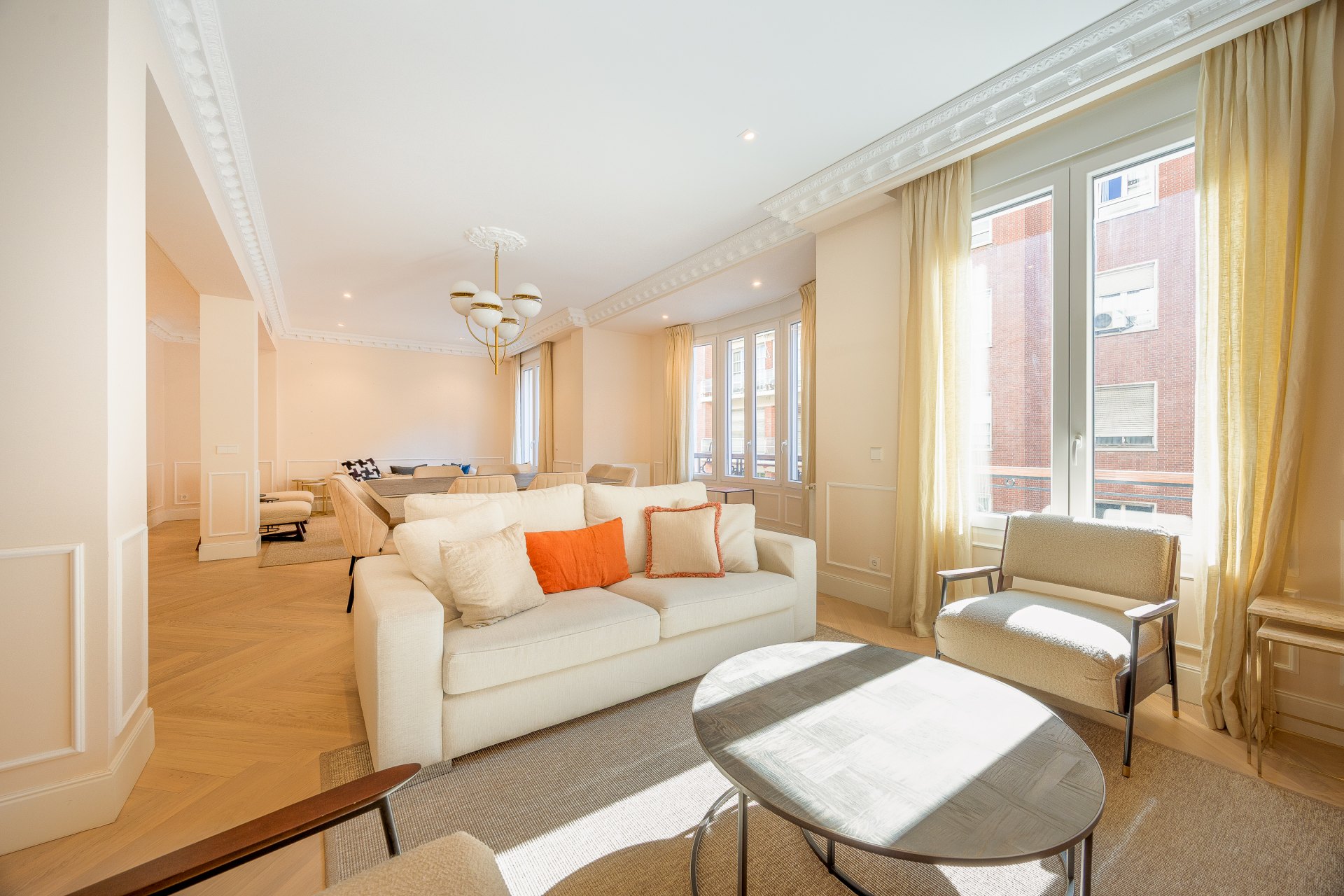 Elegante piso en el corazón de Madrid, en la exclusiva zona de Recoletos, se encuentra ubicado en una cuarta planta de una finca clásica con fachada restaurada, que conserva todo el encanto de la arquitectura tradicional madrileña. Con una distribución de 4 amplias habitaciones y 4 baños completos, este inmueble ha sido completamente reformado, combinando lo mejor de los elementos clásicos con modernas comodidades.