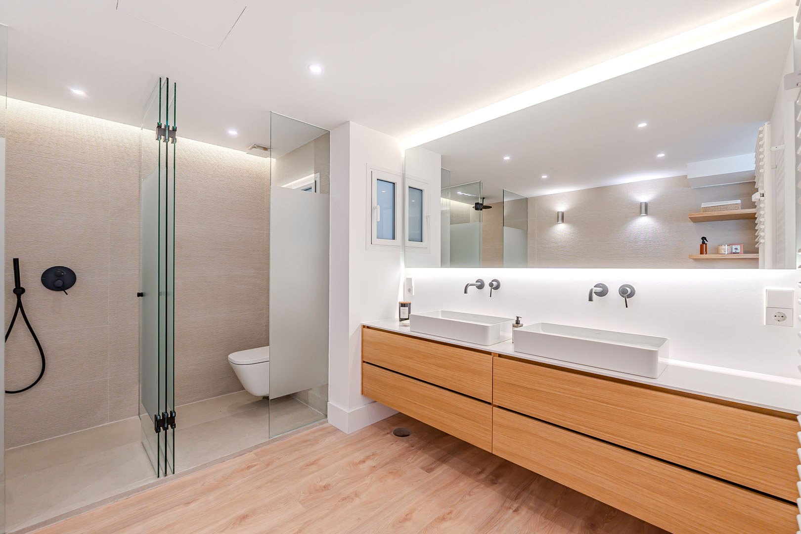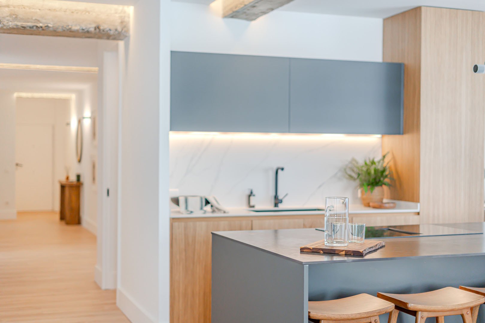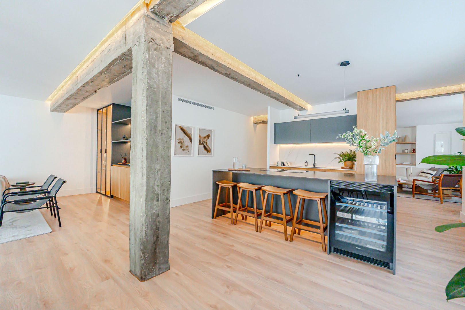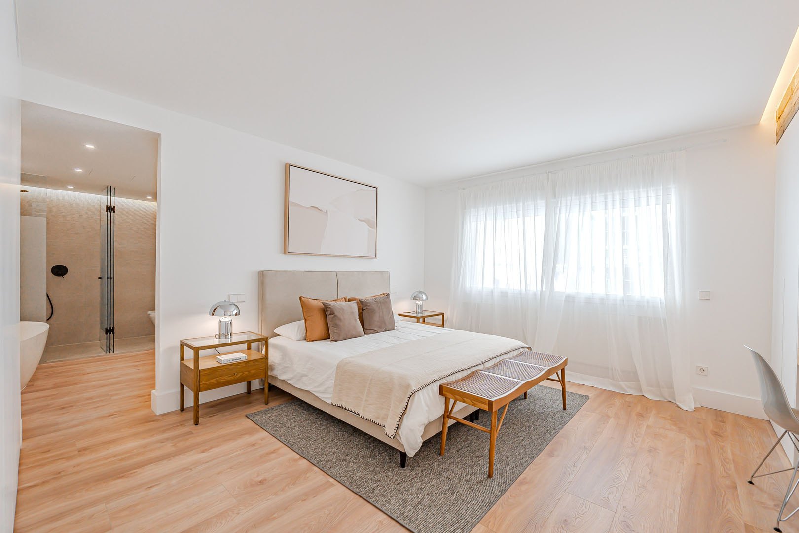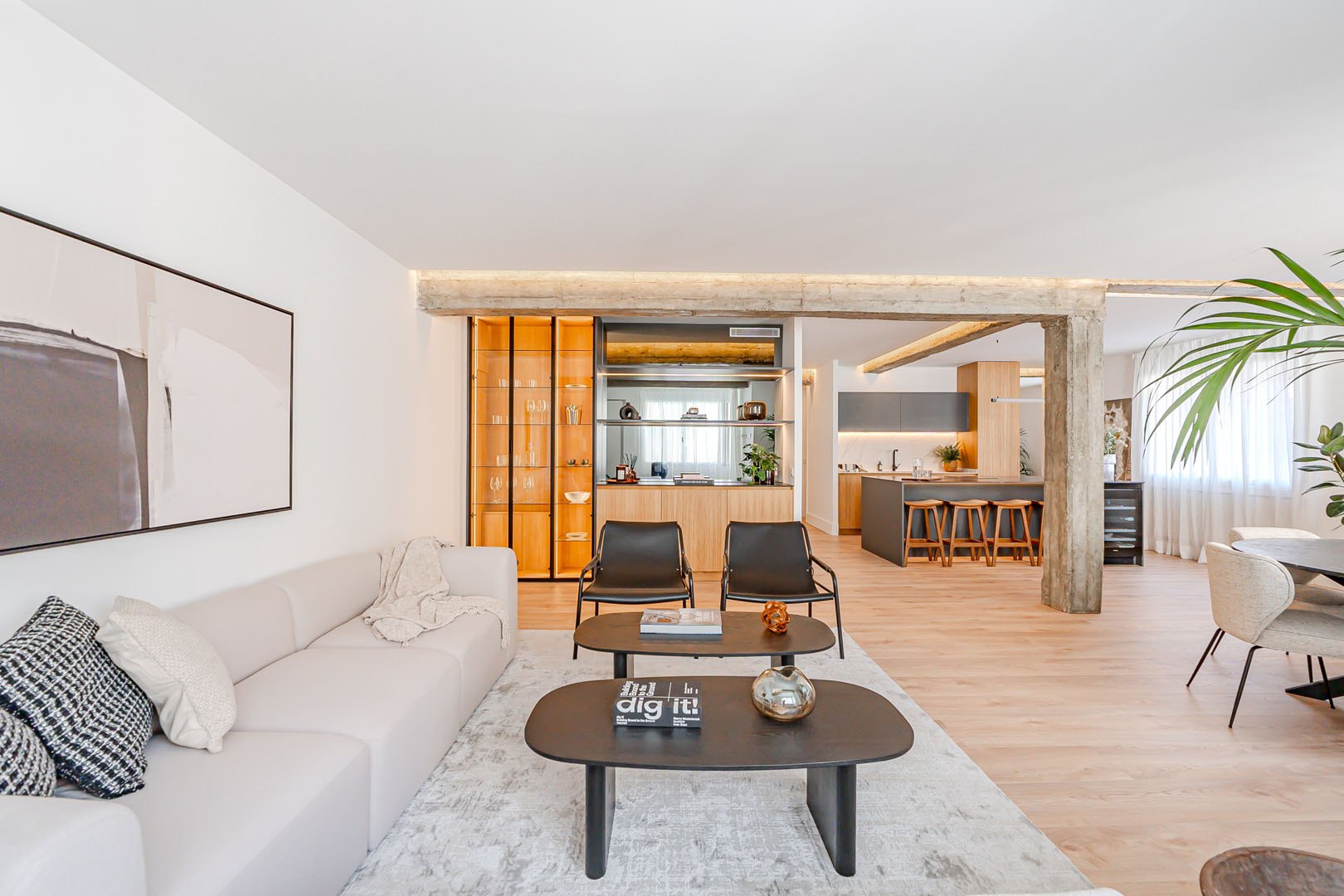 La distribución del piso ha sido diseñada para maximizar el espacio tras una renovación integral. La zona social es un espacio diáfano donde la cocina, abierta al salón comedor, está equipada con electrodomésticos de alta gama. El salón se complementa con un cómodo TV Room y un aseo de cortesía estratégicamente ubicado, permitiendo una circulación fluida. La zona privada está compuesta por tres habitaciones en suite, incluyendo una master suite con walk-in closet, proporcionando privacidad y comodidad.